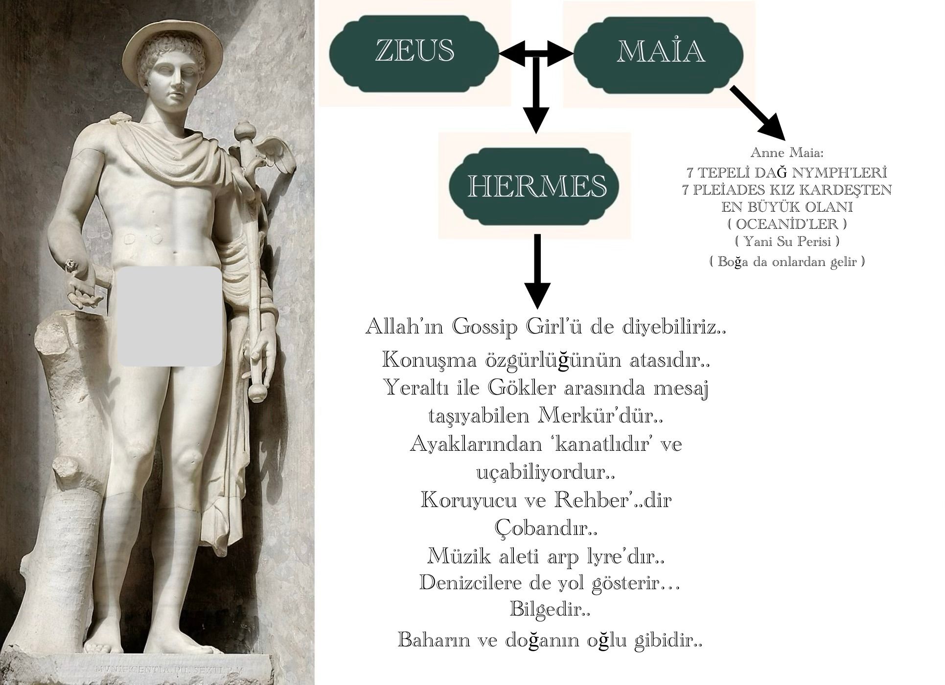Konuşma özgürlüğünün her gün baskılandığı bir ülkede, yıldız haritasında birçok Merkür işareti bulunan biri olarak ( ki siz bilmiyorsunuz, doğumumdan önce ayrıca babam rüyasına girilerek "Dünya'ya 'özel çocuk' gelecek, dokunmayın" diye de uyarılmıştır, yine de yıllarca bir temiz dayak yiyip, kendim olmama baskı görmüşümdür, bunu sonra anlatmayı düşünüyorum, sizin 46 Maraş :/ görürseniz selamımı söyleyin ) size Allah tarafından 'konuşma özgürlüğü' her daim 'serbest' ve 'baki' kılınmış Hermes'ten bahsetmeye karar verdim..